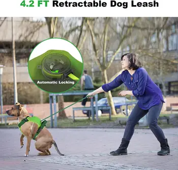 4.2FT Dog Leash Retractable: For any types of dog with up to 180 lbs in weight, strong and durable.Safe to grip, a perfect spring for smoothly retracting dog leash while you will not hurt yourself.